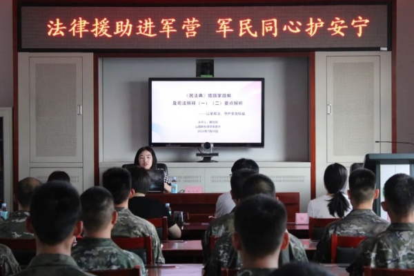 7月30日上午,我所律师魏向丽作为市法律援助值班律师同阳泉市法律援助中心工作人员一同走进驻地武警某部,以“法律援助进军营,军民同心护安宁”为主题,开展了一场“面对面”的法治宣讲和“一对一”的法律咨询活动。