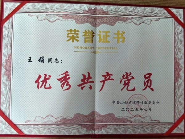 王娟律师从事律师行业以来,一致兢兢业业、时刻以党员的标准严格要求自己,积极维护法律尊严和当事人的合法权益,用实际行动履行党员的使命和职责。此次获得表彰,是对王娟律师的政治素养和执业能力的肯定,也是对我所党建促所建的认可。王娟律师表示,“******共产党员”称号既是荣誉,也是责任。自己将以此为动力,以更加昂扬的斗志,更精湛的专业素质投身法治实践,在维护公平正义、保障群众权益中持续贡献新东党员的先锋力量。