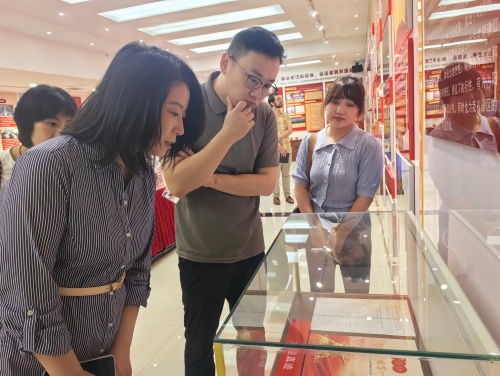讲座结束后,古思达律师事务所及商会一行人移步至山西新东律师事务所参观。新东律师事务所热情接待了来访嘉宾,带领大家参观了律所的办公环境、党建活动室以及红色展厅。红色展厅内丰富的红色文化展品和历史资料,让嘉宾们深受震撼,他们对新东律师事务所的党建成果和红色文化传承表示高度赞赏。