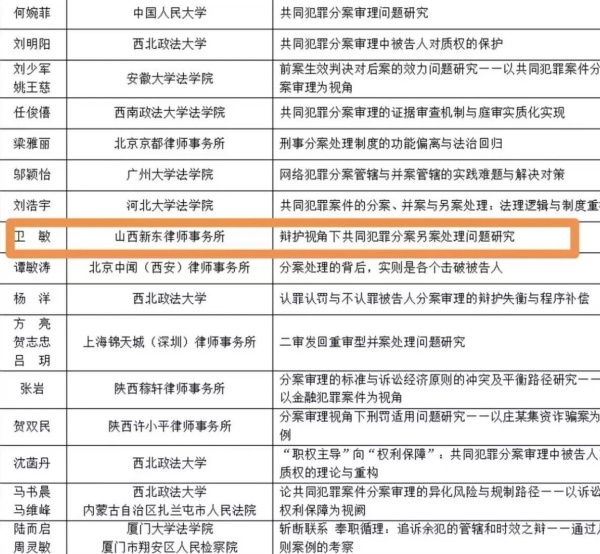 我所卫敏副主任撰写的《辩护视角下共同犯罪分案另案处理问题研究》成功入选本届论坛论文集。该论文从共同犯罪案件分案另案处理的历史渊源及现状入手,通过梳理剖析共同犯罪案件分案另案处理的常见弊端,从明确分案另案处理的范围、改造分案审理程序、保障诉讼参与******利等角度提出了相应的完善建议。