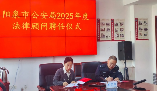 近日,阳泉市公安局举行了常年法律顾问续聘仪式,我所副主任赵仲琴律师成功续聘为市公安局常年法律顾问。