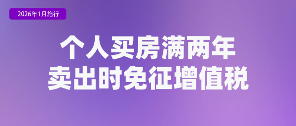 财政部、税务总局发布《关于个人销售住房增值税政策的公告》。《公告》明确,个人(不含个体工商户中的一般纳税人,下同)将购买不足2年的住房对外销售的,按照3%的征收率全额缴纳增值税;个人将购买2年以上(含2年)的住房对外销售的,免征增值税。《公告》自2026年1月1日起施行。