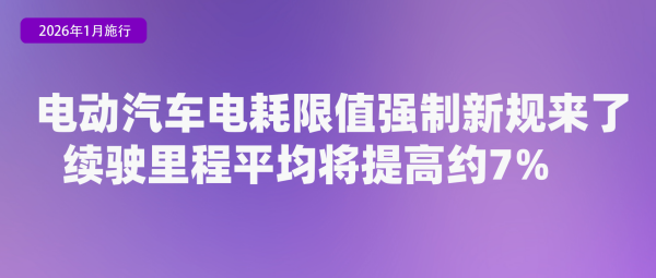 《电动汽车能量消耗量限值 第1部分:乘用车》(GB 36980.1—2025)******标准自2026年1月1日起实施,该标准是全球******电动汽车电耗限值强制性标准。该标准综合考虑纯电动乘用车电耗现状、节能技术潜力、成本控制、特殊车型电耗表现等,提出了不同车重下的电耗限值,较上一版推荐性标准加严约11%,并根据不同使用特征、不同技术特点的车型电耗差异,提出相适应的指标要求。新标准实施后,企业必须对新出厂的产品进行必要的技术升级。以2吨左右的车型为例,新标准要求百公里电耗不应超过15.1度电,技术升级后,在电池容量不变的情况下,电动汽车的续驶里程平均将提高约7%。
