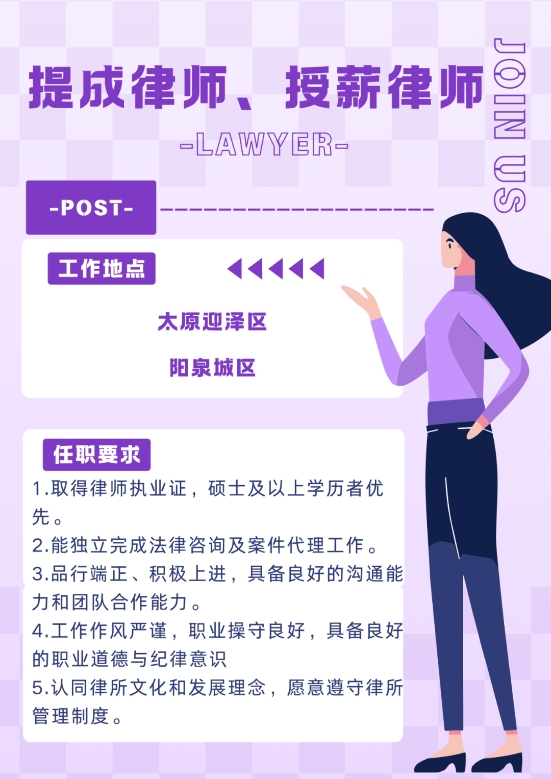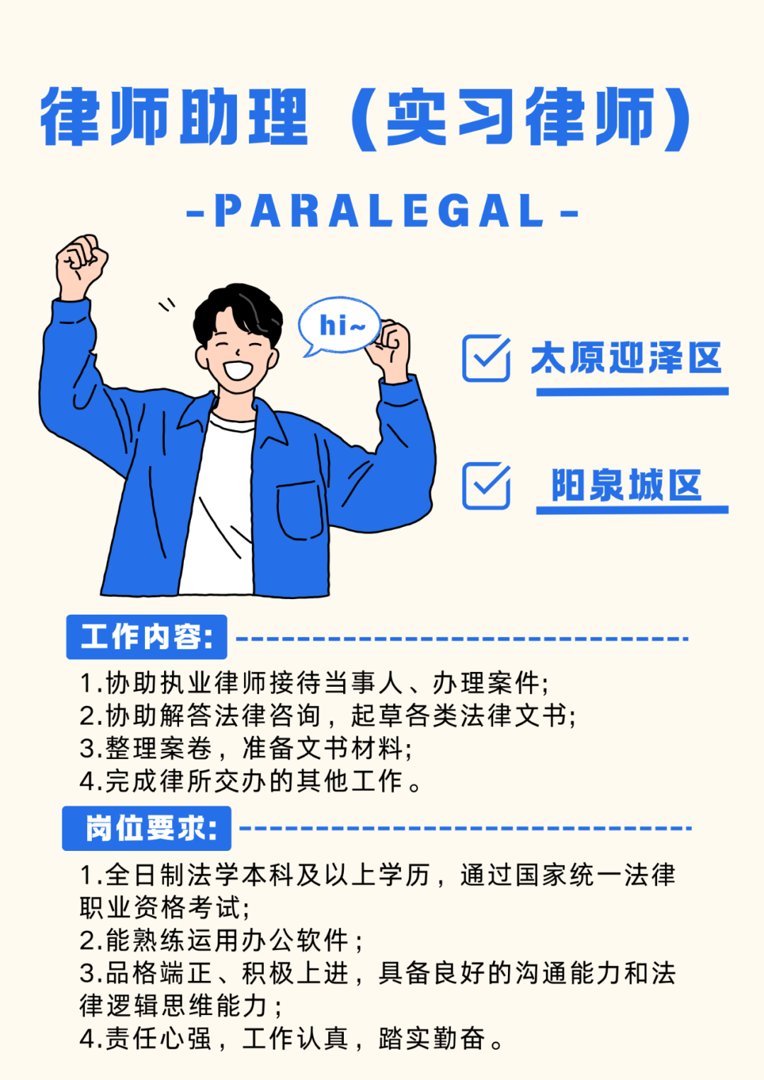 阳泉所招聘负责人:毕女士 18603539515(微信同号)太原所招聘负责人:贾女士 13753395317(微信同号)