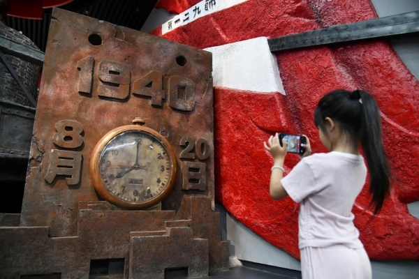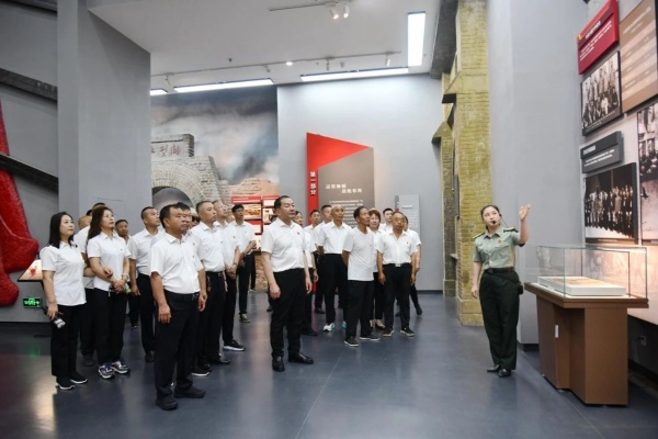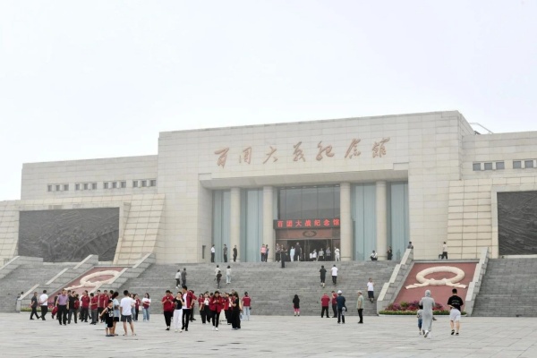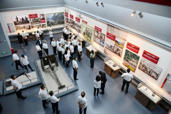 百团大战纪念馆内,参观者庄严肃穆,聆听讲解